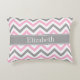 Rosa Dk Grått White LG Chevron Grått Namn Monogram Prydnadskudde