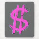 Med dollartecknet för pengar, valuta och pengarar förenas brev S med två linjer i lodrät. Rosa dollarteckentografik är ett handmålat dollartecken med synliga penseldrag som är ge den symbol som 60-talets popkonst ser ut. Den rosa dollartecknet har en skugga i en blå nyans. Fyll ditt bankkonto med massor av deg, bröd eller moolah och välj Rosa dollarteckendesign.