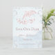 Anpassa ett unikt bröllop-meddelande med en Rosa Dolphin-spara datumet. Meddelandedesignen har en metallisk formad delfin mot en nedsänkt havsbakgrund i vågar, med elegantens scrollsar och text som du kan anpassa med din bröllop-datuminformation. Ytterligare spara datum meddelande som är tillgängligt för den här konstruktionen i en mängd olika färg.