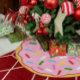 Rosa Donut med färgfyllda sprinkler Julgransmatta Borstad Polyester