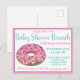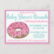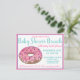 Inbjudan design har en original markörillustration av en rosa glassad donut med strössel, med rosa och turkos blåa accenter. Perfekt för en baby shower, födelsedagsfest eller inbjudan till frukost eller brunch.