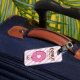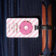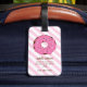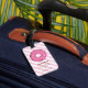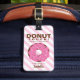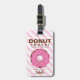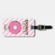 Denna rosa donut-resvärtsetikett är ett perfekt tillbehör till resväskan för flickor. Med det personliga namnet på framsidan och annan information på baksidan är det extra speciellt.