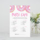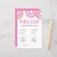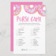 Sök efter objekten i listan. Den som har mest poäng är vinnaren! | Lägg till den här roligten "What in your purse"-spelkort till babyduschen. Den här babyduschtrivia-spelkortet har vattenfärgade munkar med färgstarka sprinkler i rosan. Anpassa genom att lägga till namn, händelse och datum. Denna rosa ger inget västerländska spel är perfekt för vilken babyduschsäsong eller vilket tema som helst.