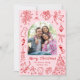 Det här trendiget i recensionskortet har visuella illustrationer av hand plockade i en röd och rosa färg palett med handskrivet teckensnitt. Det finns utrymme för ett foto på framsidan och två på baksidan. Det är perfekt för en modern Julhälsningar och uppdatering av familj och vänner med dina senaste nyheter. Koppla ihop det med något i DOODLE-samlingen för ett sammanhängande utseende.