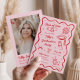 En snabb inbjudan till studenten som innehåller en vågigt ram, doodlegrafik, en röd och rosa färg palett och ett handskrivet teckensnitt. Den här inbjudan till roligten är enkel att redigera och är perfekt för en flickas studentfest. Pair med något från TILLY-samlingen för ett sammanhängande utseende.