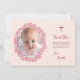 Rosa dop flicka foto & röd blomsterkrans script tack kort