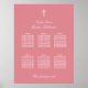 Rosa dopningsställningsschema Affisch för 6 bord, vänligen anpassa namnet på den som döps och namnen på gästerna tillsammans med eventuell annan text som du önskar anpassa. En stilren affisch med elegant vit text på en vacker rosa bakgrund.