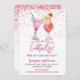 En vacker rosa inbjudan till cocktailparty. Denna fantastiska inbjudan har akvarellmålade cocktailglas på en rosa konfettibakgrund. Lätt att anpassa med dina egna detaljer för cocktail eller drinkparty.