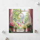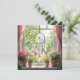 Håll kontakten med en vän eller familjemedlem med detta underbara kort med en ai-illustration av en vacker rosa fjäderdrömmfångare som hänger i fönstret med en hylla med rosa och vita krukväxter under, med utsikt över en gård full av gröna Lucius-träd.