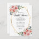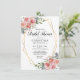 Fintvätt och elegant inbjudningskort för möhippa med vattenfärg i rosa, dammig ro med grönt färg och vit bakgrund. Modern faux guld-design ram. Kort för enkel redigering, DIY-inbjudan. Brid framtida fru Namn på baksidan. Alla färger och all text kan ändras/redigeras. Kontaktdesigner för andra variationer. Se andra artiklar i bröllop-svitsamlingen "CHRISTINA".