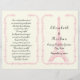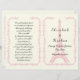 Rosa Eiffel Torn Paris destination vikt bröllopsprogram. Utformningen av perfekten och bröllopsprogrammet i party för ert Paris bröllop har Eiffel Torn i mitten och en damm gräns i rosa. Välj bara det pappra värdet och vika det till hälften.