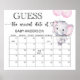 Rosa elefant akvarell baby shower gissa terminskalender affisch.
