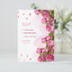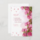 Rosa Elegant Flowers Bröllop Den här OSA kort utstrålar elegans med mjuka rosa-toner och lyxig blommigt för peonin. Kortet har en delikat arrangemang av rosa personer som sitter längs högerna och skapar ett romantiskt och sofistikerat utseende. Bakgrunden är en subtil pastel , som förbättrar blommigtens skönhet. Typografin är ett snyggt skriptteckensnitt som tillför lite elegans, medan huvuddetaljerna markeras i ett underskattat serif-teckensnitt för tydlighetens skull. Den här inbjudan är perfekt för ett bröllop som kallas vår eller trädgården och som anger en förfinad men ändå inbjudande ton för din speciella dag. F009