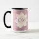 På en mönster i den smala rosan är rosa och lavender-pastellblomman där du kan anpassa den med en fras, logotyp eller namn eller bara behålla brev OM som skapar ett namntema. Chic stygn elegans.