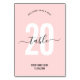 Fullborda dekorationen för ditt privata eller affärsevenemang med detta eleganta rosa bordskort. Detta feminina bordskort har stora nummer i blekrosa och elegant kalligrafi-teckensnitt, perfekt för användning på företagsaktiviteter, välgörenhetsgalor, årsdagsmiddagar eller bröllopsreceptioner - denna stilrena design passar alla tillfällen! Du kan redigera all text och färger för att skapa anpassade sittplatsskyltar för ditt evenemang.