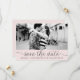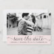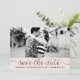 Whimsisk och feminin spara datumet fotoförhandsvisning med svart elegant skript på rosa bakgrund. Andra färger och liknande föremål finns tillgängliga.