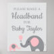 Rosa Elephant Baby Shower Headband-tecken Poster