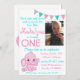 Hon är söt och söt och så mycket roligt! Rosa elefantfödelsedag med ballong på baksidan.