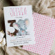 Inbjudan har en rosa elefant under en tredje födelsedagsfest. Baksidan av inbjudan har en rosa Gingham mönster. Anpassa inbjudan med din information och du har möjlighet att köpa utskrivna inbjudningar eller en digital nedladdning.