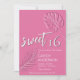 Tropiskt Embossed handflatan minimalistisk rosa-skript söt 16 Inbjudan.