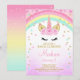Rosa enhörningsinbjudan med gyllene stjärnor inbjudningar
