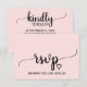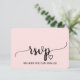 Detta rosaröda enkla kalligrafiska bröllopswebbplatsens svarsbrevskort är perfekt för ett elegant bröllop. Designen har en romantisk och söt flytande kursiv stil på en vacker och delikat ljusrosa bakgrund. Anpassa det elektroniska svarsbrevskortet med din svarsfrist och adress till bröllopswebbplatsen. Om era gäster inte behöver något lösenord till webbplatsen kan du ersätta texten med ett kort och kärleksfullt meddelande till era gäster eller en alternativ metod för att svara.