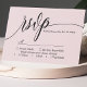 Låt kärlek blomstra med en aning enkelhet i eleganten. Den här rosa-OSA kort har ett modernt calligraphy-skriptteckensnitt och lägger till en liten respit utan tidslängd i bröllop-skrivbordet. De minimalistiska behållorna fokuserar på OSAN och säkerställer en tydlig och snyggt respons från dina gäster. Som ett perfekt komplement till ert minimalistiska bröllop-tema blandas denna mångsidiga OSA kort helt enkelt med romantisk, chic, modern eller sofistikerad estetik. Anpassa den med information om namn och bröllop för att skapa en sammanhängande responssvit för din speciella dag.