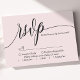 Låt kärlek blomstra med en aning enkelhet i eleganten. Den här rosa-OSA kort har ett modernt calligraphy-skriptteckensnitt och lägger till en liten respit utan tidslängd i bröllop-skrivbordet. De minimalistiska behållorna fokuserar på OSAN och säkerställer en tydlig och snyggt respons från dina gäster. Som ett perfekt komplement till ert minimalistiska bröllop-tema blandas denna mångsidiga OSA kort helt enkelt med romantisk, chic, modern eller sofistikerad estetik. Anpassa den med information om namn och bröllop för att skapa en sammanhängande responssvit för din speciella dag.