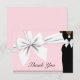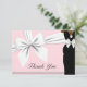 Rosa etniskt prinsessan baby shower tackkort. Koordinerar med våra tiffany tema baby shower inbjudningar, brevpapper, partydekorationer och bestick för en lyxig baby shower. Kombinationen av pärlor, en vit rosett, pärlor och elegant modern skrift med vintage-vibbar gör detta till en frukost hos tiffany eller någon annans ideala baby shower tema.
