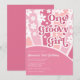 Rosa Ett Groovy Tjej Retro Regnbåge Första Födelse Inbjudningar