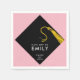Kreativa partyservetter för examen med svart och guld examensmössa på rosa bakgrund. Anpassa genom att redigera texten för att lägga till namn och avgångsklass.