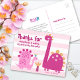 "Tack för besöket". En rolig, fantasifull och lekfull illustration av två söta, djärva, kawaii, rosa brontosaurier och rolig, handskriven typografi på en ljus rosa och vit randig bakgrund, hjälper till att uttrycka din uppskattning. En cool typsnittsbehandling av ordet ”roar” och din anpassade anteckning finns på baksidan. Säg tack till dina gäster med dessa bedårande, moderna, enkla dinosaurie-flicka anpassade förskole- och/eller grundskole-tack-kort. På framsidan kan du anpassa med hennes namn. Skriv en anpassad anteckning på baksidan eller lämna den tom för ditt handskrivna meddelande. Du kan också lägga till din returadress. Matchande inbjudningar, banderoller, skyltar, klistermärken och andra småttigheter finns också tillgängliga i denna speciella och roliga kollektion. Garanterat att tillföra en stilren touch till din korrespondens! Skriv