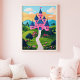 Fly till en värld av drömmar med denna förtrollande fantasislott konstaffisch. Ett fantasifullt rosa slott, inbäddat bland böljande gröna kullar och en levande solnedgångshimmel, skapar en scen av ren magi och under. Denna affisch är perfekt för att väcka fantasin! Idealisk för barnrum, lekrum eller någon som älskar sagor.