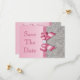 Personlig bröllop spara datum kort. Elegant anpassningsbar silver och rosa färg dubbla sida vid sida sparat datumet med vackra glätttryckta glitter-sekviner mönster, söta glandiga vektorbågar och rosett band och söt, snyggt tryckta bilddiamanter på vitling och rosa text på rosa övertoningsbakgrund. Dessa klasynga, moderiktiga rosa- och silver-formella anteckningskort dekoreras på båda sidor och trycks på valfri papper inbjudan. Vackert, chic, trendig, modern dubbla sidade kort med giglitz och glamor. Observera: All inbjudan på Zazzle har platt tryckt bilder. Jag har matchande produkter för bröllop i min affär. Text, teckensnitt och färg i teckensnitt kan anpassas efter dina behov. Om du behöver hjälp med att anpassa produkten kontaktar du mig genom min butik. Jag kommer att vara lycklig för att hjälpa till.OBS! - Alla inbjudningar till Zazzle har platt tryckt bilder.