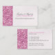 Det här affärskortet av trendiget från The Spoted Olive™ har en bild av rosa glitter mot en bild med lätt texturerad bakgrund. Anpassa enkelt din personliga information eller företagsinformation. OBSERVERA: DEN HÄR KONSTRUKTIONEN INNEHÅLLER ENDAST EN SKRIVEN BILD AV GLITTER; DET FINNS INGEN FYSISK GLITTER SOM ANVÄNDS ELLER INGÅR I; DET FINNS INGA EMBELLISTER. DET HÄR ÄR ETT FLAT UTTRYCKT KORT. Copyright 2013-Present | Den fläckade olive™ | Alla reserverade Höger