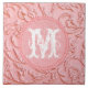 Rosa Filigree Wood Carving Blommigt Glam Glamor Swirl Monogram initial dekorativ Visning Tile Personlig