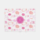 Beställnings- monogramfilt i ljusa och färgrika ugglor och fjäderillustrationmönster i ljusa fuchsia shock rosa, korallpersika och bebisrosor.