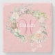 Rosa fina rosor Blommig elegant skriptmonogram Stenunderlägg