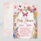 Rosa fjärils-baby shower blomsterträdgård inbjudningar