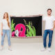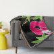 Stiliserade fågelkonst av en flamingo mellan dekorativ grönt löv mot svart bakgrund