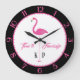 "Dags att lamingle" med den här snyggten och elegantens rosa flamingo-klockdesign. Gör det till din egen, eller är en underbar personlig-presentidé med anpassade initialer.