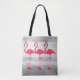 Skapa en anpassningsbar rosa flamingo i väskan lägg till din egen namn eller text för att anpassa den på shabby chic rand i skuggor av grått över utskriften.