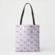 Tote Bag med rosa flamingo-illustration och Blue Punts mönster.