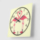 Rosa flamingo-bird-kärlek-eart fyrkantig klocka