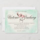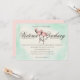 Två rosa flamingos i hand plockade-vattenfärgen dekorerar den här inbjudan till rosa i elegant med skarp dekorativ text och varm bakgrund av elfenben och mynta.