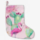 Rosa flamingo, exotiska fåglar, mjuka blommor, ro. liten julstrumpa