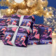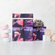 Den här säsongens Greetings-tropisk strand som omsluter papper har en rosa flamingo med en röd och vit julhatt. Det finns festive helgdag string ljus och Ribbon och Stars Julgran. -
