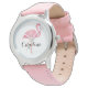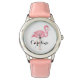 Cute rosa Flickas klocka med rosa flamingo och ditt barns namn.