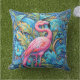 Rosa Flamingo Frodig Tropisk Djungel Botanisk Kastkudde. Denna kastkudde tillför en antydan av kustnära eskapism till ett strandhus, uteplats, solrum, utomhushus, kustinspirerat sovrum, tropiskt gästrum eller en färgrik läsläkt. Den livfulla flamingon och den frodiga blå bladverken tilltalar köpare som vill ha tropisk färg och lugna semesterkänslor hemma. Perfekt för människor som dekorerar för att känna sig upplöfta, avspända, lekfulla och omgivna av färg.