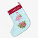 Rosa Flamingo i Santa Hat med Candy cane Bouquet Stor Julstrumpa